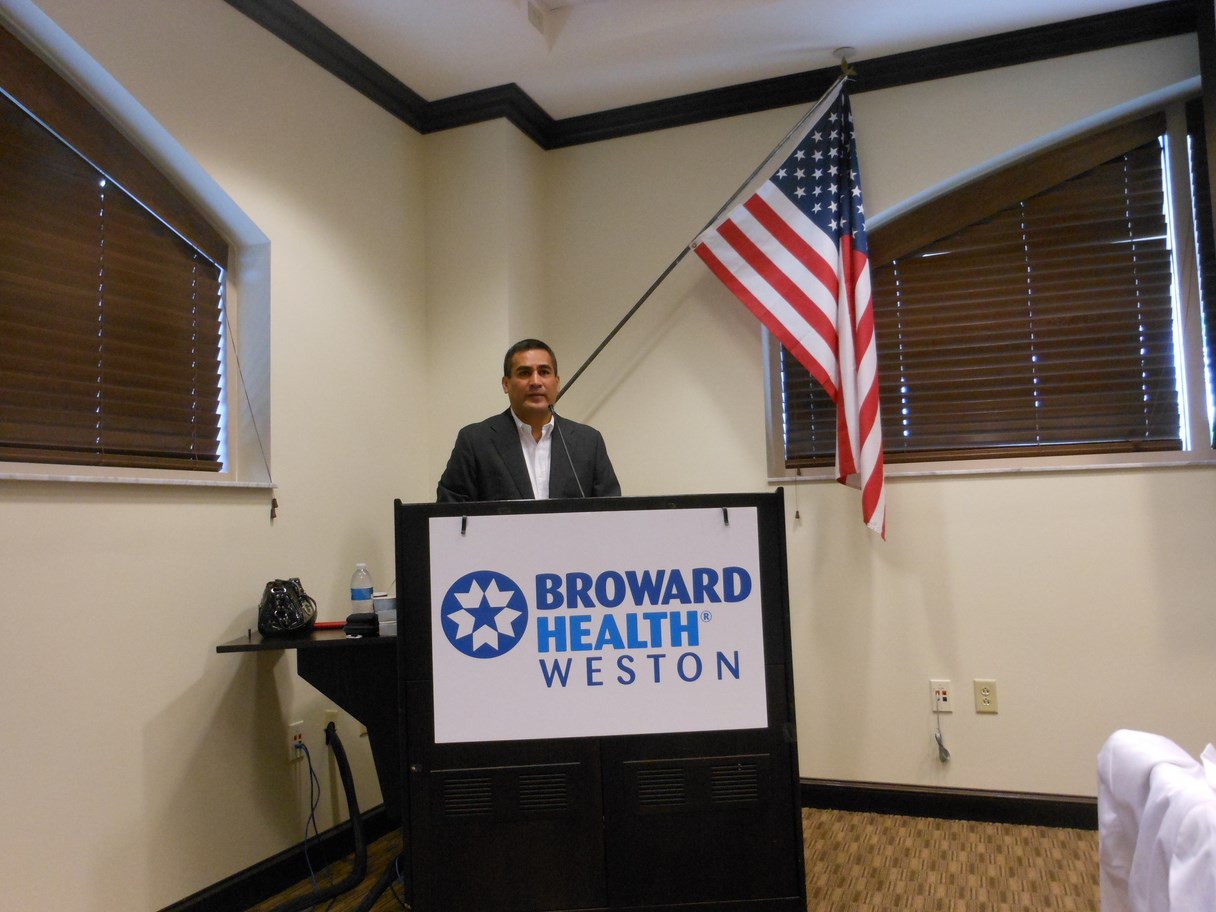 Durante la charla sobre CUIDADOS DE LA PIEL EN EL VERANO en la Asociación Mujeres Latinas de Weston, Florida.